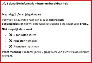 In de week van 2 t/m 6 maart zullen wij alleen voor SPOED open zijn.